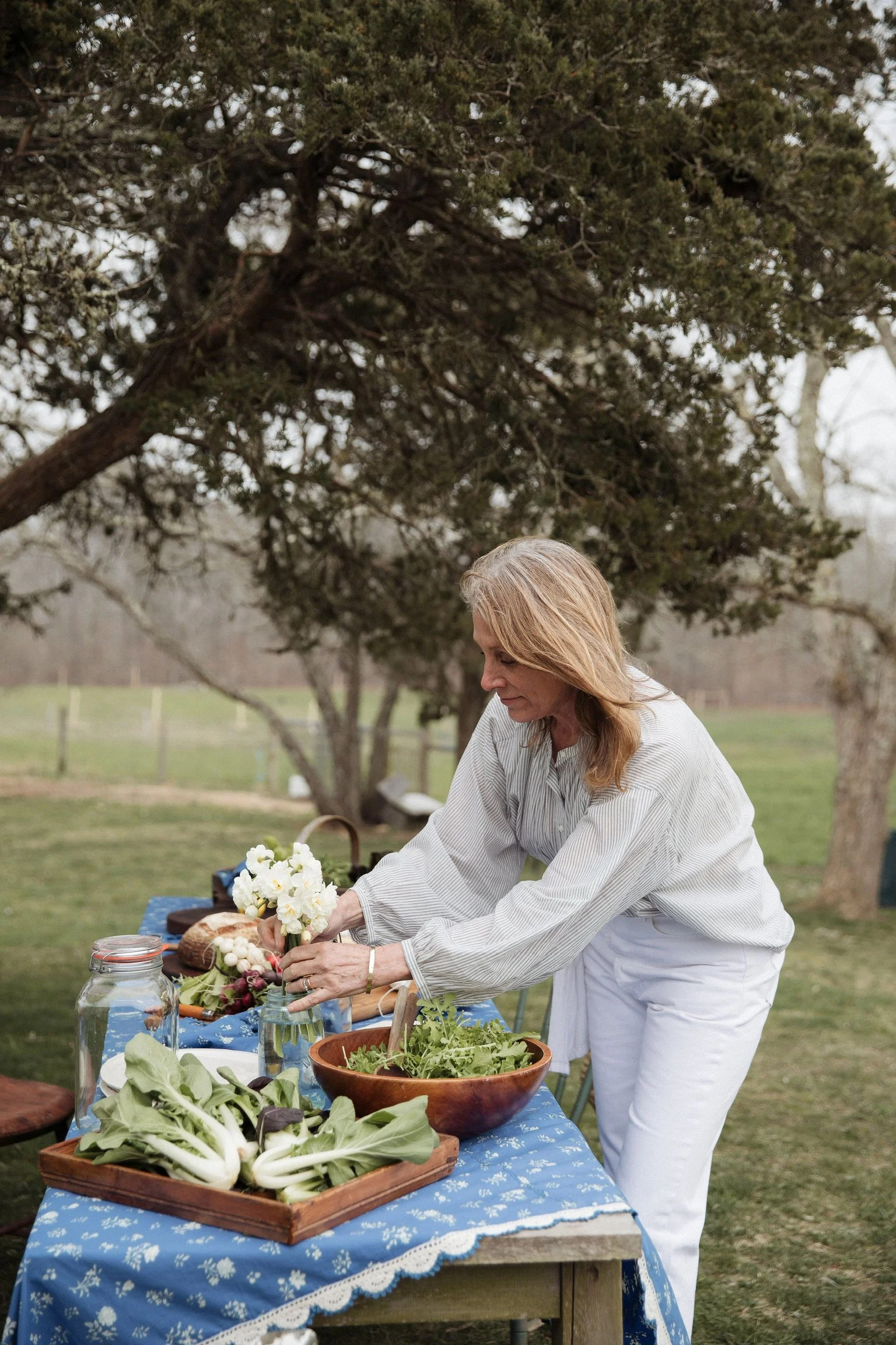 Her affinity for cooking began in childhood with appreciation for her mother’s hearty, seasonal, mostly made-from-scratch fare. Her palate was cultivated through early years of restaurant work during high school summers and throughout college, as well as on her travels throughout the US and abroad. She also credits her appreciation of food with exposure to the high/low dining she encountered living in New York City during the 80s and early 90s — first, while working in book publishing on an extremely limited salary (pizza + pierogis), then later as a sales rep in the commercial film industry with an unlimited expense account (truffles + foie gras).